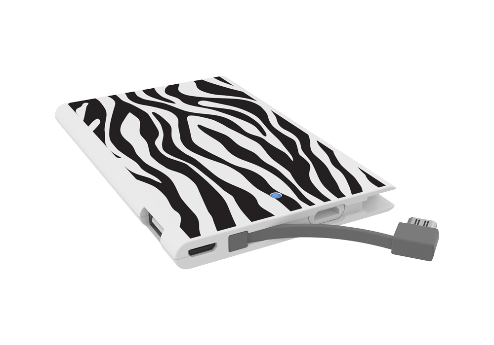 Made using the latest in portable battery technology, lithium polymer, which allows for smaller cells to hold more charge and higher power output, allowing for a slimmer design. The ChargeUp Pocket 2500 with zebra design features a compact form-factor, an integrated soft-feel Micro-USB cable.