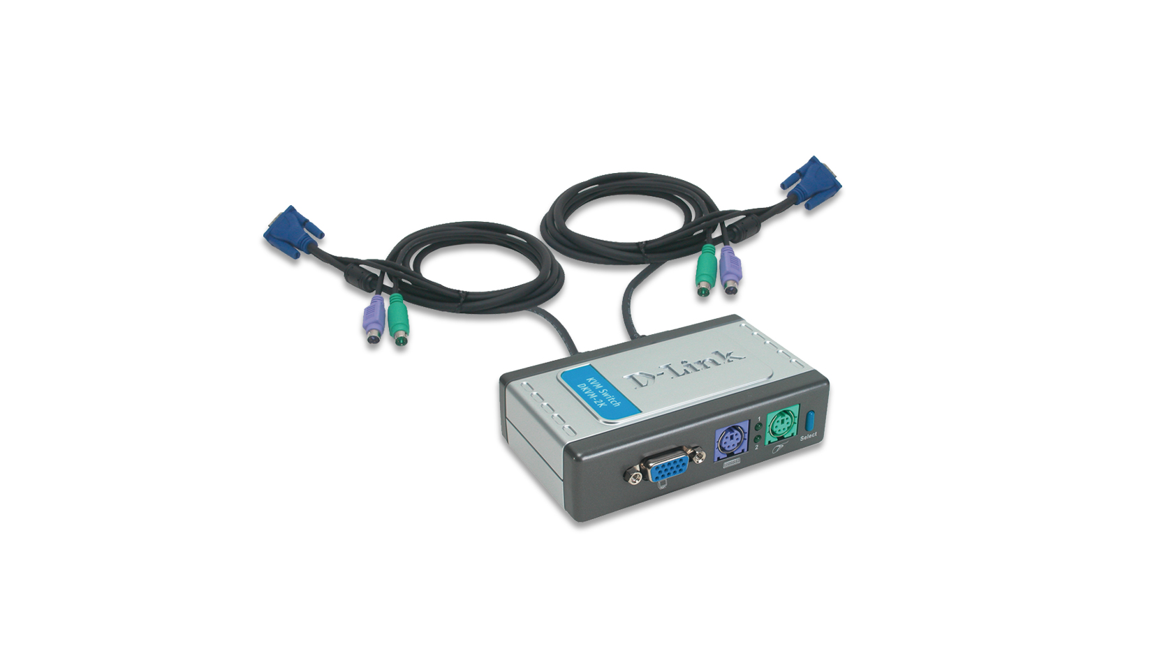 The D-Link DKVM-2K is a 2-port PS/2 based KVM switch for controlling two computers using a single monitor, keyboard, and mouse. The DKVM-2K minimizes clutter on your desktop with its compact design and convenient built-in cables.