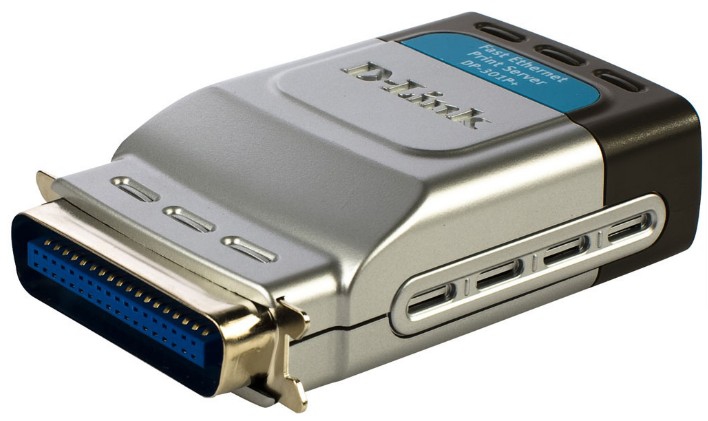 D-Link's new Fast Ethernet print server is a compact device that attaches to a parallel printer. This device permits the printer to print files from a large number of users connected over a Fast Ethernet network. Designed to work with both PC and Macintosh, this pocket-sized device saves users cost by doing away with the need to equip every workstation with a dedicated printer. Multiple computers can share a single printer; the print server queues users print files, allowing the printer to print them out in an orderly manner. Through the DP-301P+, users connected over a network who access the Internet, run Windows 95, 98, 2000 or NT, or run Unix, Linux or MacOS can print files transparently from the shared printer.