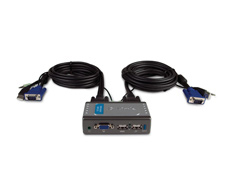 Control two computers using one monitor, USB keyboard, and USB mouse with D-Link’s 2-Port USB KVM Switch with Audio Support (KVM-221). The KVM-221 allows users to effortlessly control two systems without having to buy additional computer peripherals. It is ideal for the home office where business files are kept on one computer and personal files on another. With the built-in audio support, you can also share a set of speakers between two computers. Listen to music on one computer while having quick access to resources on the second computer! You can even dedicate one computer as a music server.