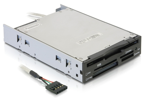 This DeLock card reader with integrated Floppy drive can be installed into the 3.5” drive bay of your PC. Black, silver and beige front blends are included for different chassis colors. This card reader can read and write 36 different memory card formats as well as FDD.