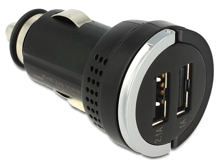 This USB charger by Navilock enables you to charge up to two USB devices, like cell phones, smart phones, MP3 players or iPhones / iPads, in your car or truck through the cigarette lighter. It supports a voltage supply of 3100 mA in total, 2100 mA for the first and 1000 mA for the second port, which allows you to charge e.g. an iPad and an iPhone or another smart phone at the same time.