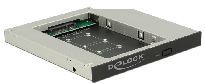 This Delock installation frame in slim-format can be installed into a 5.25″ SATA slim bay in order to operate an mSATA SSD.