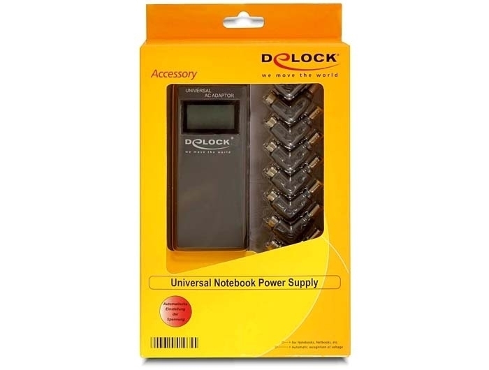 This Universal Notebook power supply can be used for power supply for different notebooks. Via USB interface you can also charge USB devices, like MP3 player, mobile phones and similar products. In delivery included are 9 different adapters, which are suitable for different notebooks. Optional there are also other adapters available by Delock as well as cable, in order to charge the notebook battery directly.