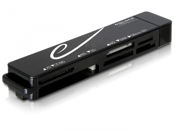 The Delock CardReader enables you to read these different memory cards via the USB port of your notebook or PC. Furthermore you can read the SIM card of your mobile phone and you do not require any adapter for small memory cards anymore.