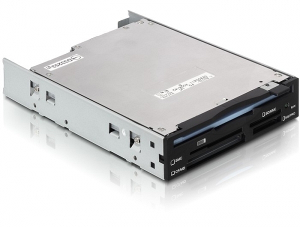 This Delock CardReader with integrated Floppy drive can be installed into the 3.5” drive bay of your PC. Black, silver and beige front blends are included for different chassis colors. This CardReader can read and write 39 different memory card formats as well as FDD.
