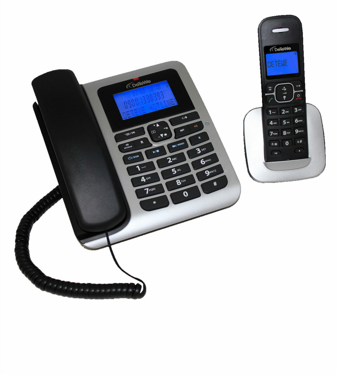 DeTeWe BeeTel 860. Type: DECT telephone, Recording time: 25 min. Mounting type: Desk, Colour of product: Black, Silver. Languages support: German, Dutch, English, Spanish, French, GRE, Italian, POL, RUS, SWE, TUR. Phonebook capacity: 50 entries. Display: LCD, Display number of lines: 2 lines