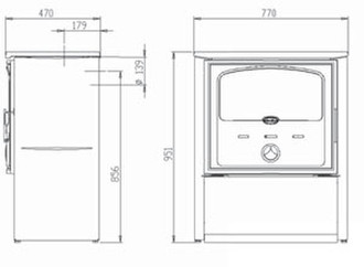 Deville Calypso. Case design: Freestanding, Colour of product: Black. Fuel type: Firewood, Suitable for rooms up to: 436 m³, Efficiency: 74.4%. Power: 11000 W. Width: 770 mm, Depth: 470 mm, Height: 950 mm