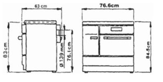 Deville Muscade. Case design: Freestanding, Colour of product: White. Fuel type: Firewood, Suitable for rooms up to: 550 m³, Efficiency: 80.1%. Power: 12000 W. Width: 756 mm, Depth: 630 mm, Height: 845 mm