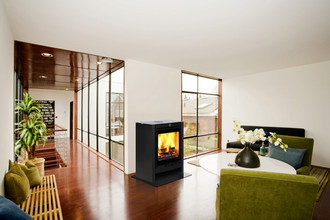 Deville Perle. Case design: Freestanding, Colour of product: Black. Fuel type: Firewood, Suitable for rooms up to: 390 m³, Efficiency: 77.5%. Power: 10000 W. Width: 856 mm, Depth: 534 mm, Height: 1045 mm