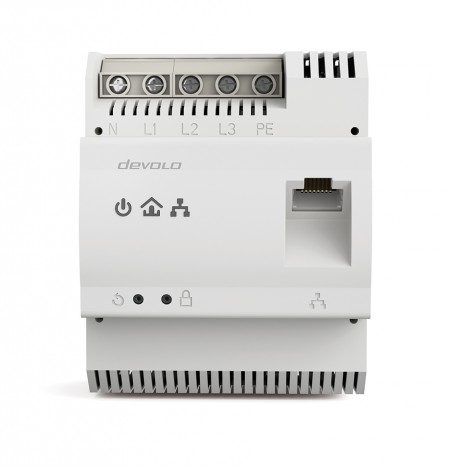 Professional Powerline technology for control cabinet and distribution box integration: The dLAN® pro 1200 DINrail enables the implementation of a wide variety of scenarios, from machine-to-machine communication to comprehensive multimedia networks. The solution potential of integrating the dLAN® pro 1200 DINrail into all kinds of distribution boxes in accordance with the DIN standard provides a core for building networking—every electrical socket in a building becomes a potential network jack. In addition, the dLAN® pro 1200 DINrail is also used for machine-to-machine connections of all kinds due to the fact that machines also require network connections. The 3-phase connection to the mains supply, in combination with the MIMO technology developed by devolo, enables exceptionally high Powerline network performance. In addition to distributing broadband Internet in buildings, the Ethernet-to-Powerline bridge is ideal for implementing projects that require special solutions for multimedia networks, building automation, energy data transmission or connecting network-capable machines.