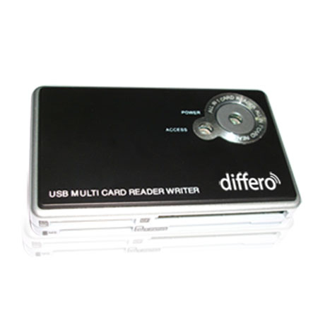 Differo Max-reader lector tarjetas 23 en 1. Colour of product: Black. Dimensions (WxDxH): 85.6 x 51.1 x 16.1 mm, Compatible operating systems: Windows 98 / 98SE / Me / 2000 / XP Mac OS 9.0 / MP
