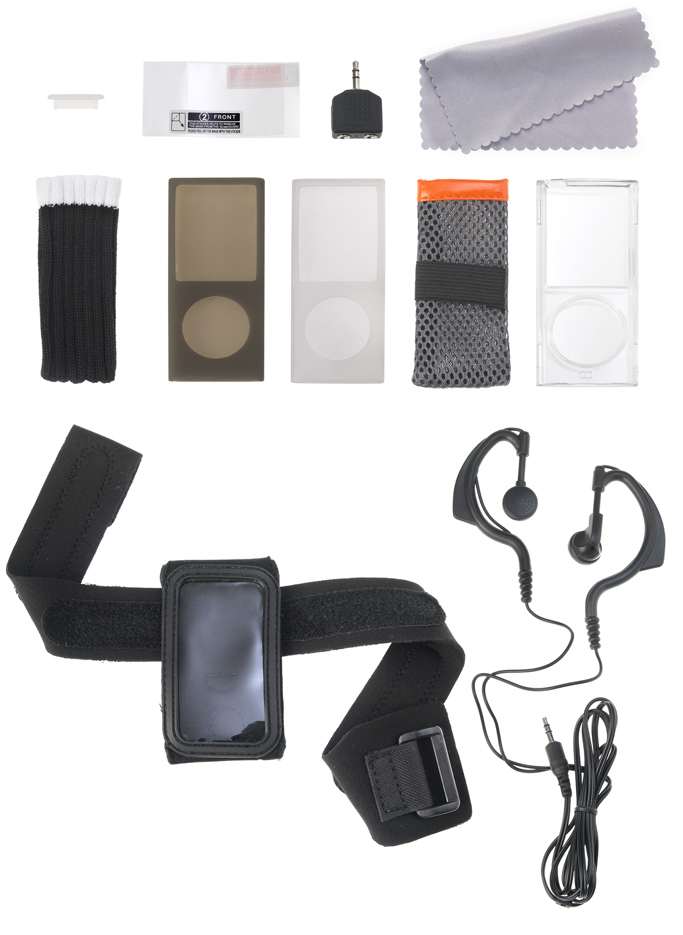 This package offers a full assortment of handy products, such as a sports earphone and wrist band, different cases, a splitter and cleaning products to keep your iPod in optimum condition.