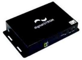 The digitalSTROM server (dSS11-E) communicates with all digitalSTROM meters (dSM) either directly via the dS485 Bus (variant 1) or indirectly via an Ethernet network to a dSS1-1GB (variant 2). The digitalSTROM server runs a web server (digitalSTROM configurator) which can be accessed from a PC/notebook via the Ethernet.