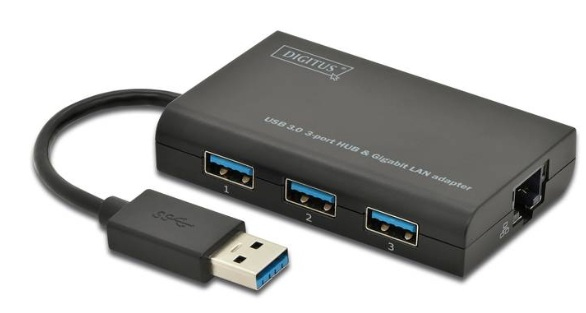 With the DIGITUS® USB 3.0 Hub & gigabit LAN Adapter you can connect 3 additional USB 3.0 high speed devices to your Ultrabook™, notebook, subnotebook, Macbook, Macbook Air etc. Printers, hard drives, flash memory, card reader, speakers and many more devices can be easily connected via the USB interface. In addition, the adapter extends your computer to an gigabit Ethernet port and makes it networable, because nowadays the most mobile devices can only be integrated into the network via wireless LAN.