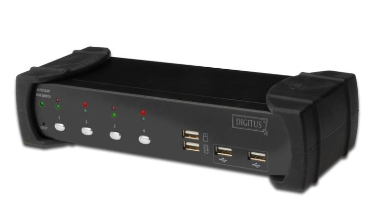 This high-qualitative DVI-KVM-Switch allows the simultaneous or separate control of up to four PCs, supports audio and additional two USB-peripherals like scanner, printer, camera or something else.