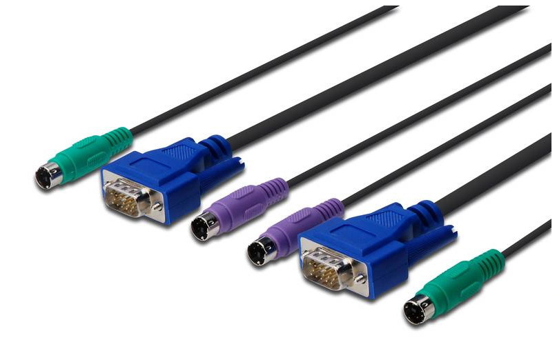 Octopus KVM Cable set, 2x PS/2 Male, 1x DSub Male - 2x PS/2 Male, 1x DSub Male, Black, 3m