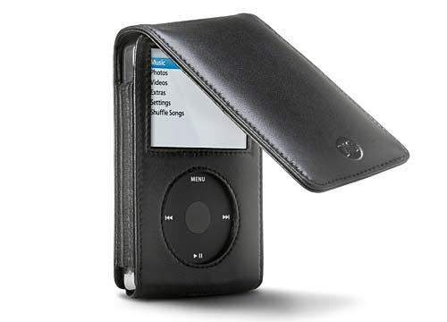 Video ready iPods of all sizes slip in the leather casing. A plush leather cover protects the entire front of the iPod until you flip it up to reveal iPod's controls. Inside the padded flip-up cover you'll also find a handy pocket thats perfect for storing business cards, ID or a bit of cash.