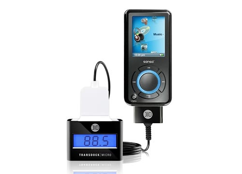 TransDock micro Vision M (5oz, Black) The DLO TransDock micro for mp3 is a simple, easy-to-use, flexible device that broadcasts music over any car stereo, and it keeps your mp3 charged during a long trip or a short commute. DLO TransDock micro features a powerful FM transmitter that’ll pump your mp3 tunes over any FM frequency from 88.1 to 107.9. Works with Sansa e200 and c200 series, Fuze, Connect and View.