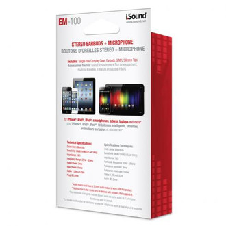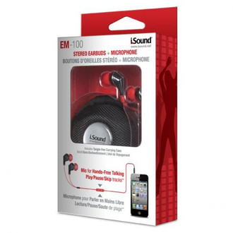 EM-100 Stereo Earbuds + Microphone Black/Red - Tangle-free Carrying Case.