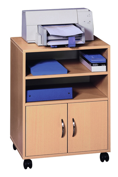 Multi-function trolley with 3 shelves: upper and middle shelf open, lower shelf with 2 wing doors. Holds up to 30 kg per shelf. High quality 16 mm thick melamine covered wood provides scratch resistant protection. Fully mobile, equipped with 4 castors, 2 with brake for stability during use. Delivered flat packed with assembly instructions. Dimensions (H x W x D): 737 x 528 x 400 mm.