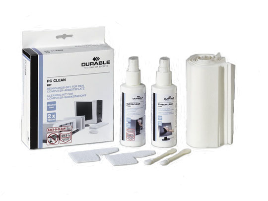 PC Clean Kit, 1 Superclean fluid 125ml, 1 screen clean fluid 125ml, 20 lint free wipes, 2 keyboard swabs, 2 keyboard cleaner The complete cleaning kit to keep your computer clean workplace. For plastic surfaces of various office equipment, as well as for monitors, screen filters, laptops, and glass surfaces of photocopiers and scanners. Alcohol. Antistatic.