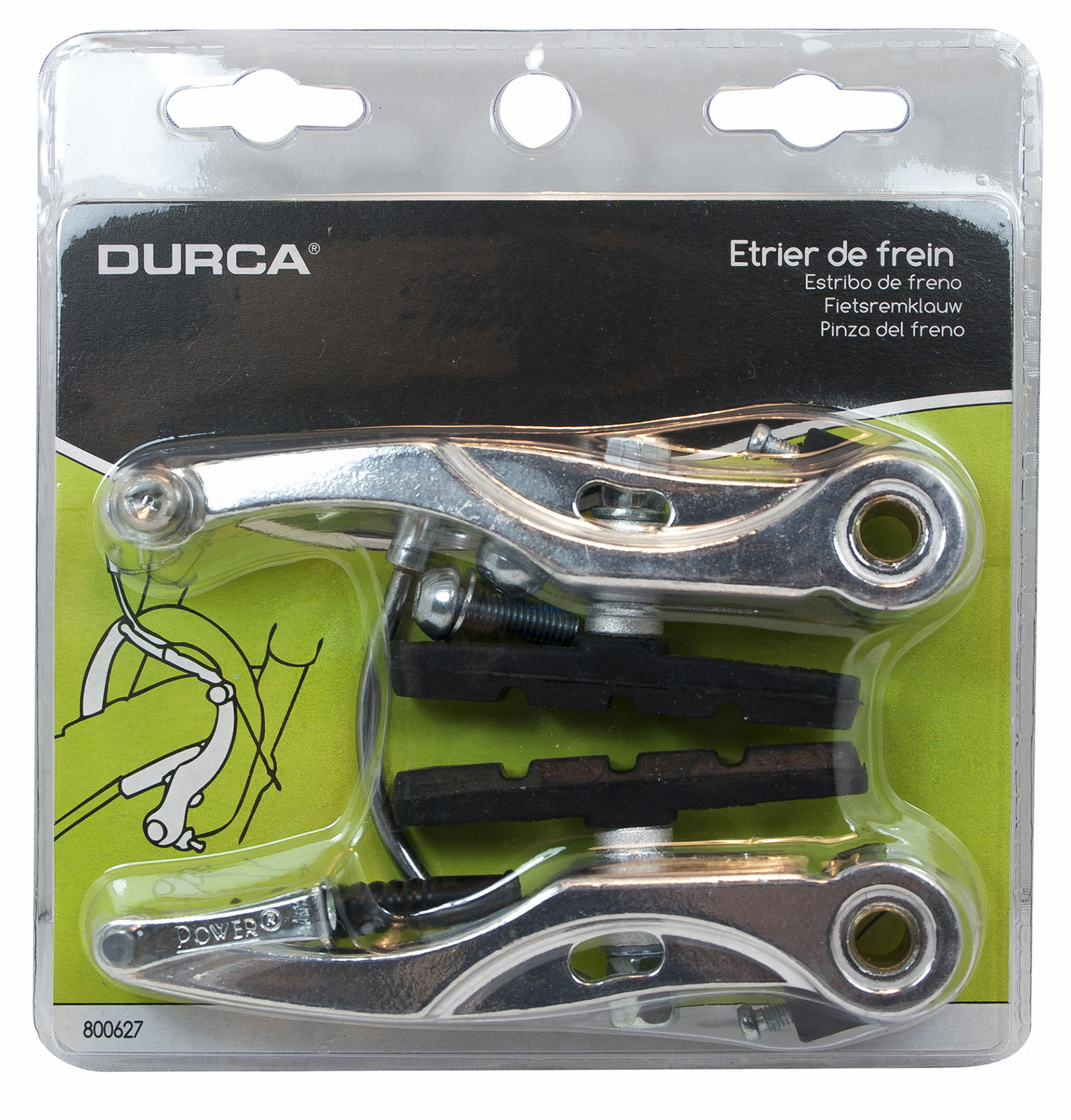 Durca 800627. Type: Rim brake, Colour of product: Black, Stainless steel. Quantity per pack: 1 pc(s), Package type: Blister. Package width: 50 mm, Package depth: 155 mm, Package height: 160 mm