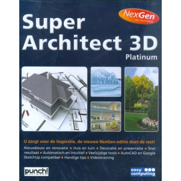 Easy Computing Super Architect 3D Platinum Nexgen. Platform: PC, Windows operating systems supported: Windows 7 Home Premium, Windows 7 Professional, Windows 7 Starter, Windows 7 Ultimate, Windows Vista. Language version: Dutch