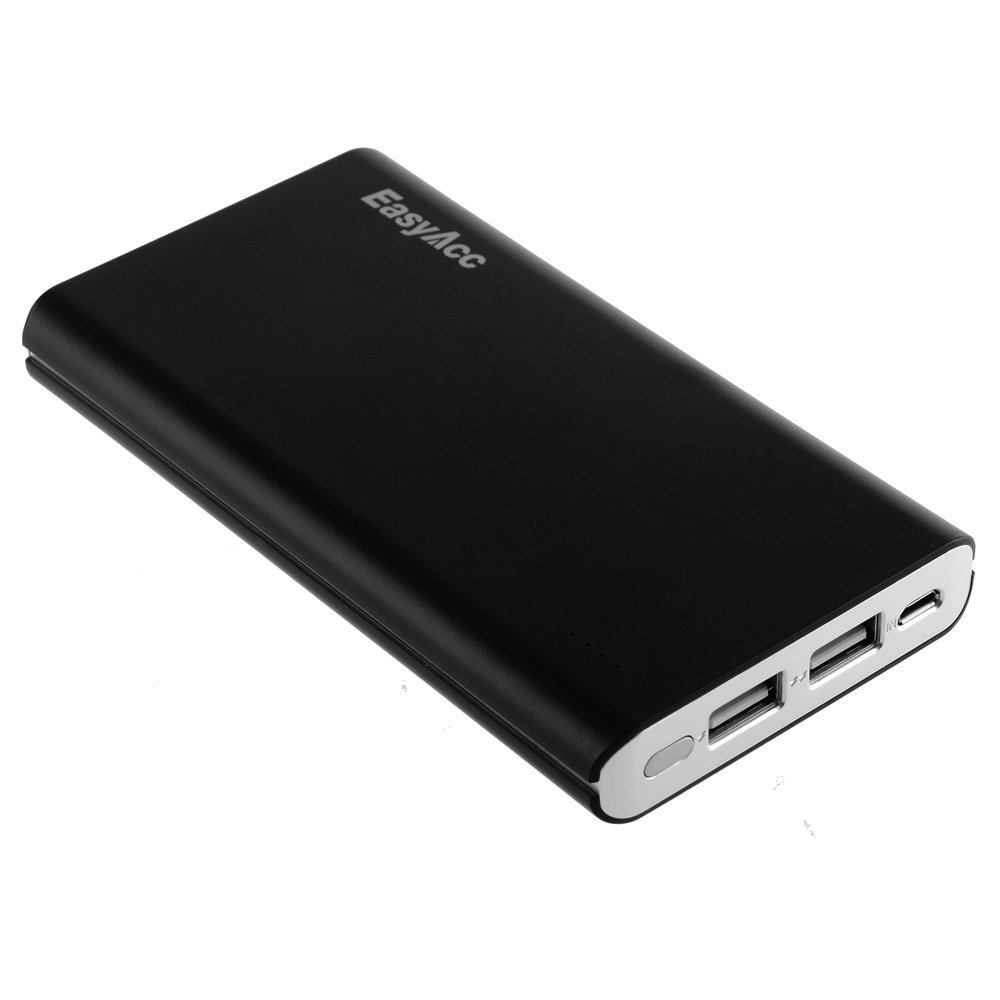 10000mAh Brilliant Ultra Slim Dual USB (2.1A / 1.5A Output) Portable Power Bank - Black and Silver