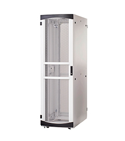 Includes best-in-class features for simple installation and configuration including, leveling feet; casters; an adjustable base plate in rear for cable pass through; flush-mounted solid side panels; full-front door that features a 77% open perforation pattern with a contoured profile for maximum airflow and surface area; and 19-inch tool-less adjustable rails.