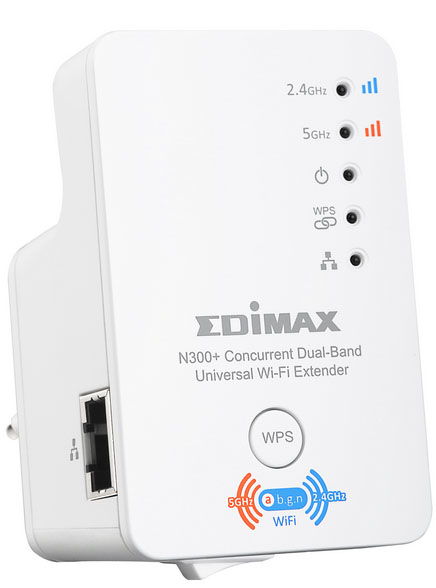 Edimax EW-7238RPD is a Concurrent Dual-Band Universal Wi-Fi Extender, complies with wireless IEEE 802.11a/b/g/n standards, providing concurrent dual-band wireless speeds up to 300Mbps.