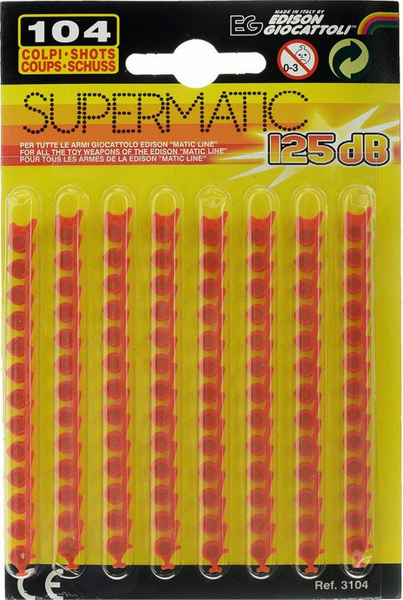 Edison Giocattoli Supermatic - 125 dB. Type: Refill, Colour of product: Red, Material: Plastic. Quantity per pack: 8 pc(s)
