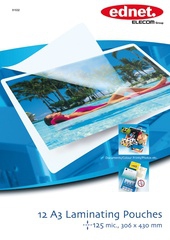 12 A3 Laminating Pouches 125 Mic. High quality pouches. A3 format 306x430mm, 125 micron, 12 pcs./pack.