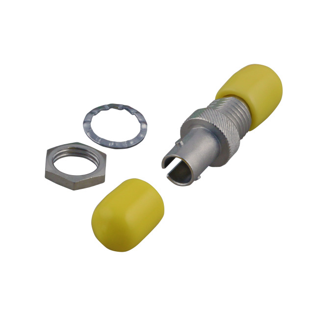 ST simplex adapter with metal housing. Suitable for breakouts with D-hole. Installation with hexagon screw. Screw included in delivery.