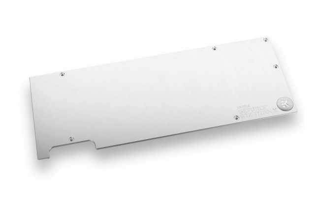 EK-FC Titan X Pascal Backplate, Nickel EK-FC Titan X Pascal Backplate is a CNC machined retention backplate made from nickel-plated aluminum for EK-FC Titan X Pascal series water blocks.