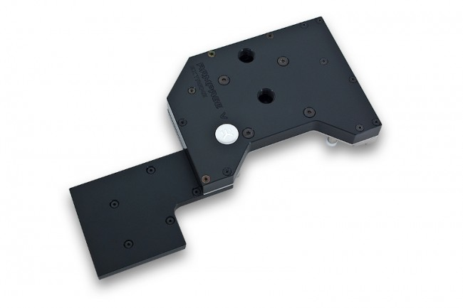 Water block is mounted with enclosed M3x5 DIN7985, M3x8 DIN7991 and M4x8 DIN7984 screws and PVC washers and utilizes the factory provided MOSFET backplate. The nickel plated brass screw-in standoffs are pre-installed and allow for easy installation.