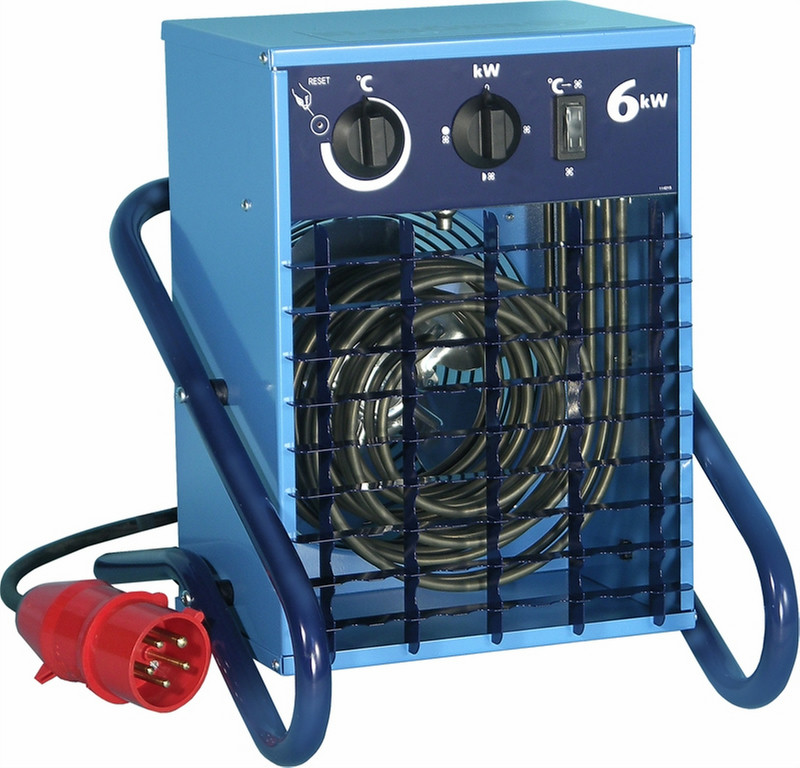 6 kW, 5-pol CEE 416-6 , 2 m, 8.7 A, 3 - 400 V, 400 m³/h, 38 dB, 8 kg, 370 x 310 x 360 mm, IP44