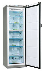 Electrolux EUF 27393 X. Case design: Freestanding, Type: Upright, Colour of product: Silver. Freezer net capacity: 254 L, Freezer gross capacity: 266 L, Freezing capacity: 20 kg/24h. Energy efficiency class: A+, Annual energy consumption: 310 kWh, Connected load: 170 W. Width: 600 mm, Depth: 645 mm, Height: 1800 mm