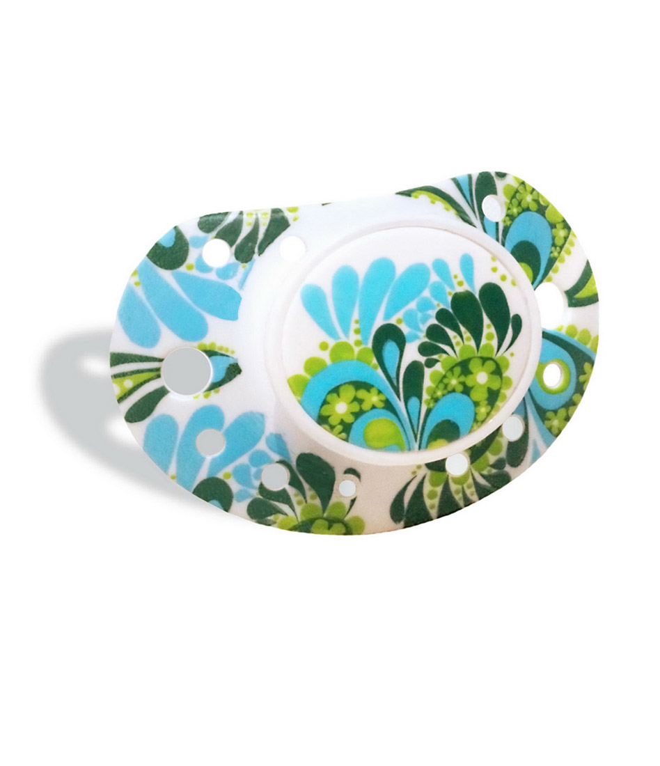 For the first time now we are able to produce pacifiers with printed shields, taking the experience to a whole new level. Apple of my eye and Retro Revolution Light are the first two models with this technique applied, and with all certainty the best sets we’ve made to date. All of our pacifiers are produced exclusively for Elodie Details by well renowned Swedish manufacturer Esska that guarantees highest quality available. Constructed of silicone. Full instructions on how to use are included in the packaging. It is thoroughly tested for safety and fulfils the European safety standard EN-1400. Suitable from 3 months onwards.