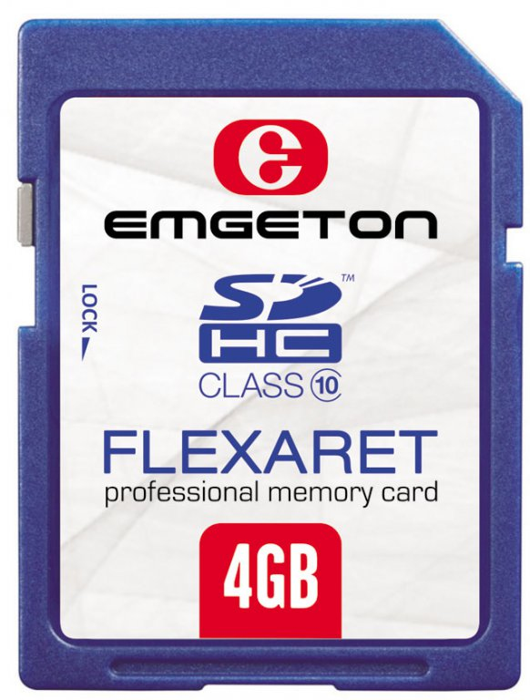 EMGETON Flexaret SDHC 4GB. Flash card type: SDHC, Flash memory class: Class 10. Dimensions (WxDxH): 32 x 24 x 2.1 mm