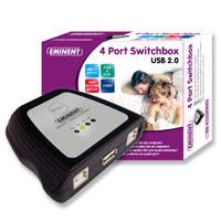 The Eminent EM1019 4 port Switchbox USB 2.0 enables you to share one USB device with multiple computers. It is now possible to share a printer, digital camera or, for instance, a scanner with several users. The EM1019 Eminent Switchbox is easy to use: you can determine which computer can use the connected USB device with one push of the button. Enjoy your USB devices and let the EM1019 Eminent Switchbox do all the hard work!