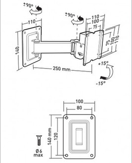 Erard AMER002580. Minimum VESA mount: 75 x 75 mm, Maximum VESA mount: 100 x 100 mm. Tilt angle: -15 - 15°. Colour of product: Black