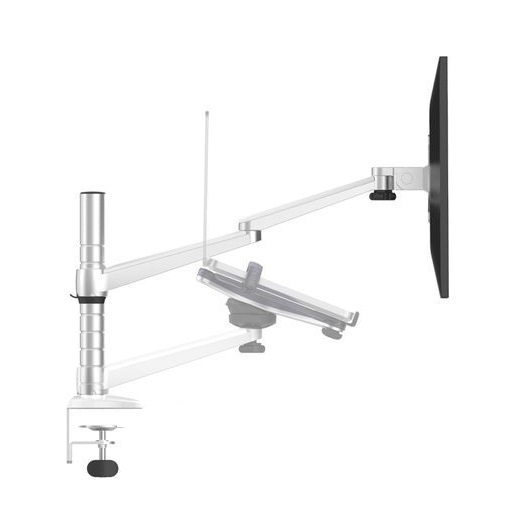 Ergoline Style Plus OA-7. Maximum weight capacity: 14 kg, Minimum screen size compatibility: 25.4 cm (10"), Mounting: Clamp. Height adjustment range: 185 - 465 mm. Colour of product: Silver, White, Material: Aluminium