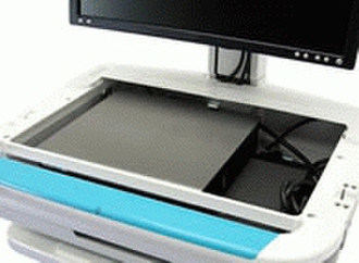 This innovative, ergonomic and easy-to-maneuver healthcare cart features sit-to-stand height adjustment, independent screen positioning and an adjustable negative-tilt keyboard tray. Stay productive and on the go with our certified cart and power system; it is fully certified to UL 60601-1, CAN/CSA C22.2 No 601.1 and NFPA current leakage limits.