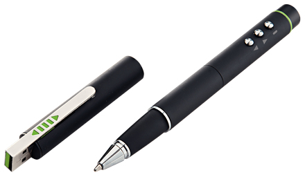 Confidentially in control with a smart presenter that simplifies every presentation. All functions you need for an impactful performance are packed in a sleek design with red laserpointer, ball pen and stylus.