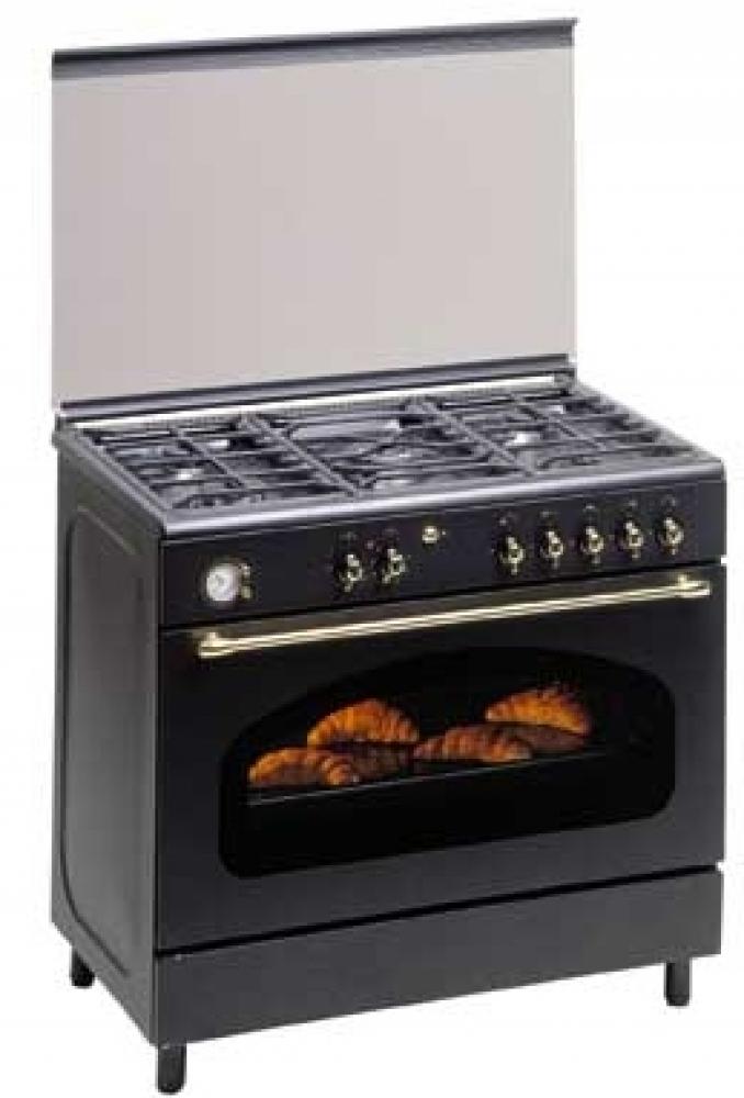 ETNA 1925VC Rustique 90 cm gas-elektro fornuis. Product type: Freestanding, Colour of product: Black. Hob type: Gas hob. Oven power source: Gas, Total oven(s) interior capacity: 103 L. Timer type: Mechanical. Width: 895 mm, Depth: 600 mm, Height: 900 mm