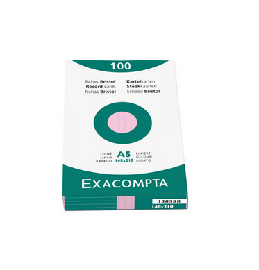 Record Cards, A5, 148x210mm, Pink, Lined, 100 Pack