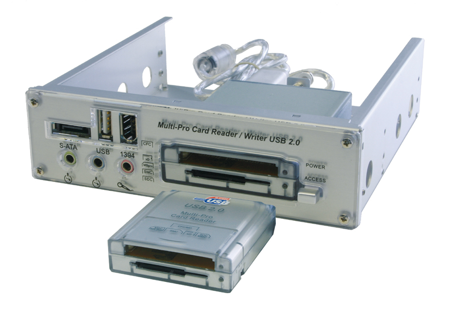 USB 2.0 internal + external 16 in 1 Card Reader incl. each 1 port USB 2.0, FireWire 1394, S-ATA and Audio.