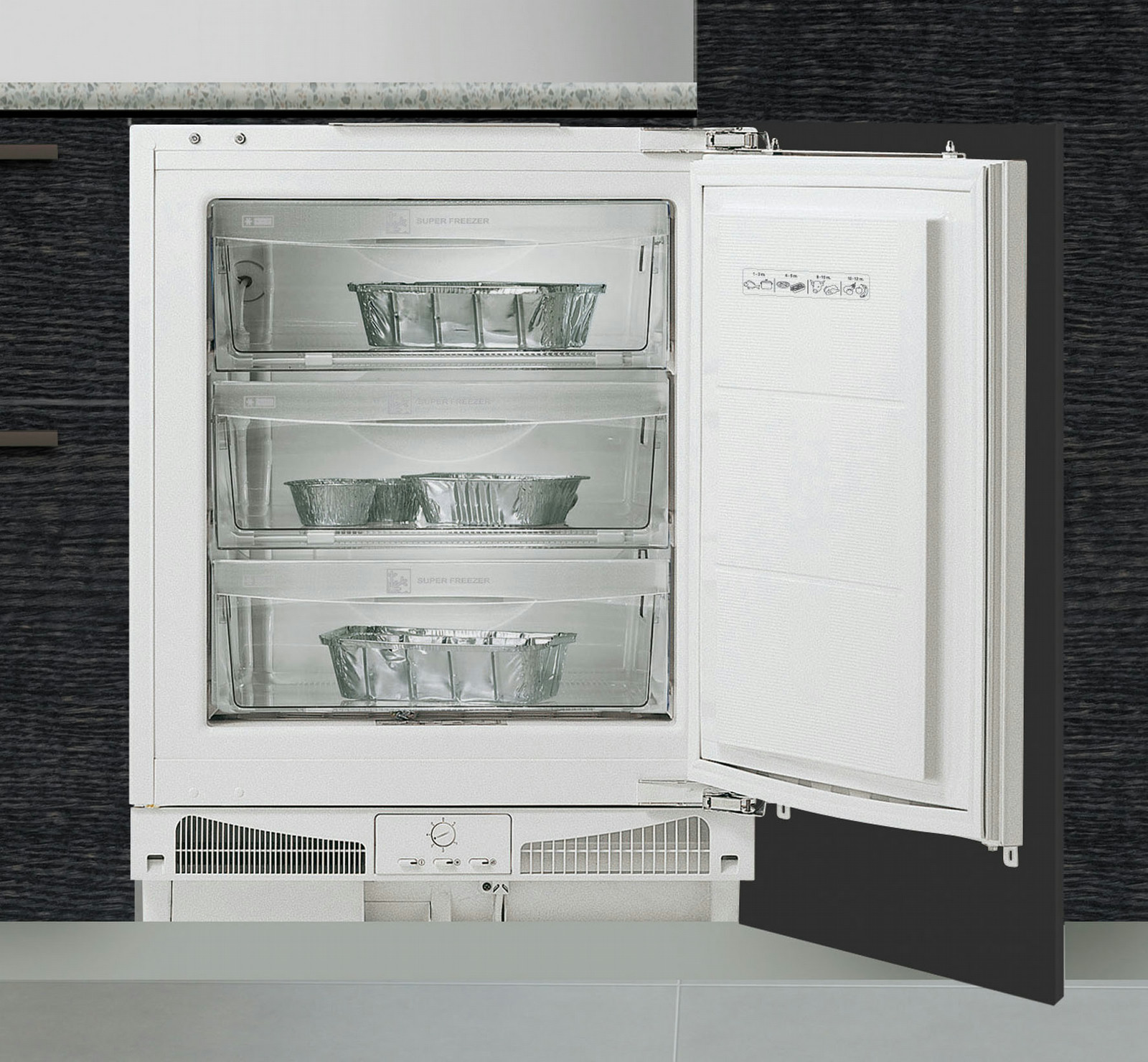 Fagor CIV-820. Case design: Built-in, Type: Upright, Colour of product: White. Freezer net capacity: 86 L, Freezer gross capacity: 96 L, Freezing capacity: 8 kg/24h. Energy efficiency class: A+, Annual energy consumption: 182 kWh, Connected load: 90 W. Width: 596 mm, Depth: 545 mm, Height: 820 mm