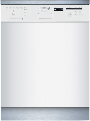 Fagor LFI-041B. Type: Semi built-in, Control panel colour: White, Cord length: 1.5 m. Number of place settings: 12 place settings, Noise level: 48 dB, Drying class: A. Energy efficiency class: A, Energy consumption per cycle: 1.05 kWh, Water consumption per cycle: 14 L. Width: 595 mm, Depth: 570 mm, Height: 820 mm. Package dimensions (WxDxH): 670 x 670 x 855 mm, Installation compartment dimensions (WxDxH): 600 x 600 x 820 mm